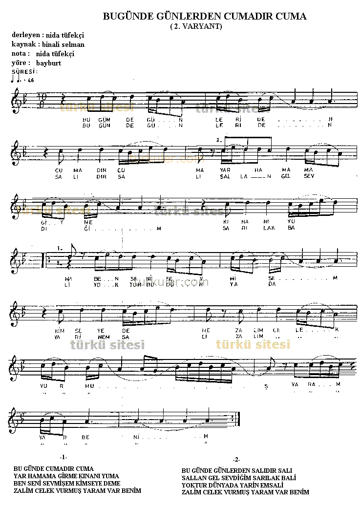 → Bugün Günlerden Cumadır Cuma-2 Sözleri